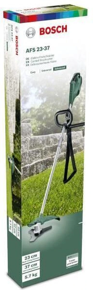 Met de Bosch AFS 23-37 bosmaaier op snoer kun je kiezen om te bosmaaien met een draad of mes. Met het mes van 23 cm snoei je gemakkelijk hardnekkig onkruid. Met het draad die een diameter van 37 cm heeft, kun je graskanten en gazons bewerken. Dankzij de capaciteit van 950 watt en een vermogen van 1,3 pk is deze bosmaaier geschikt voor het zwaardere werk en levert hij uitstekende snoeiprestaties. De bosmaaier werkt comfortabel met de verstelbare schouderriem en fijne handgreep.