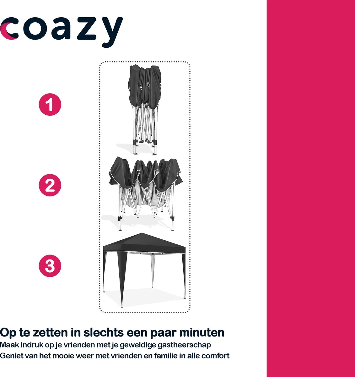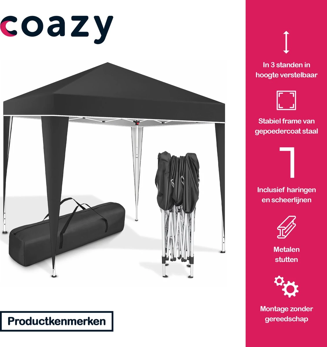 De perfecte oplossing voor al jouw feesten en partijen! Deze eenvoudig te monteren partytent kan in enkele minuten worden opgezet en biedt een instant ruimte voor je gasten om in te ontspannen. Hij is gemaakt van waterdicht en UV50+ beschermd polyester, dus je kunt er zeker van zijn dat hij je gasten comfortabel houdt, zelfs als het weer een wending neemt. Het in hoogte verstelbare frame betekent dat het op maat gemaakt kan worden voor elke ruimte, groot of klein. En met zijn stabiele stalen frame is hij bestand tegen wind en regen zonder in te storten. Dus wacht niet – bestel je Coazy Partytent vandaag nog!