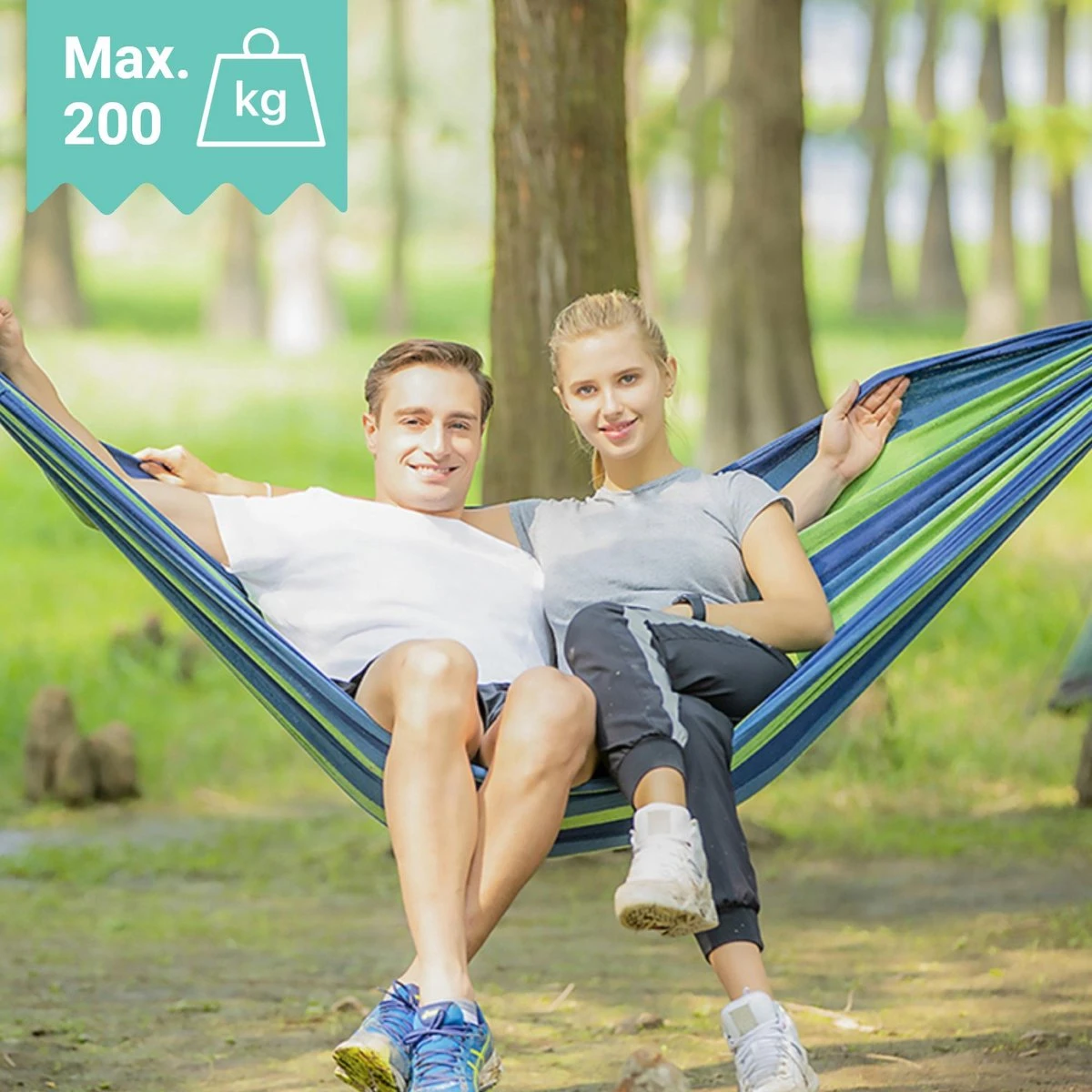 - De hangmat is geschikt voor 1 of 2 personen door zijn breedte van 150cm