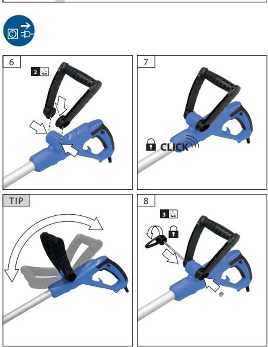 - Min. werkhoogte van de handgreep: 890 mm