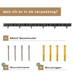 Bezem Ophangsysteem – Bezemhouder – Tuingereedschap – RVS – 5 Houders – 6 Haken – BAULK®